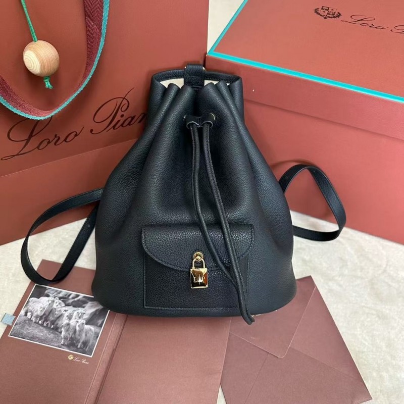 L**o p*ana extra black imported cowhide drawstring backpack, size: 25*27*14cm