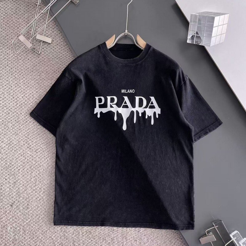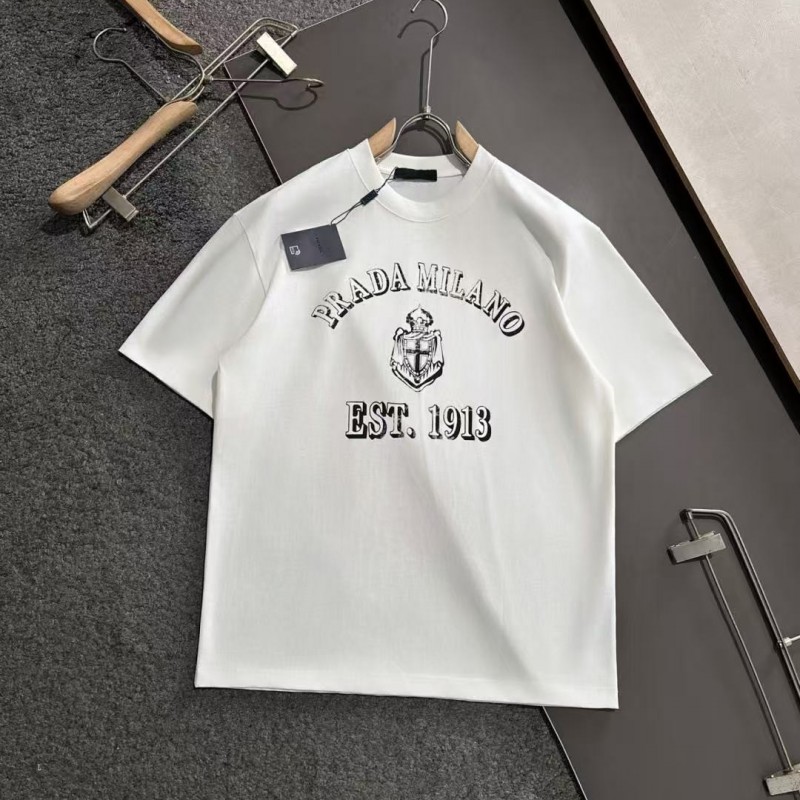 Pra*a 2025 Spring and Summer Latest Round Neck Fashion Short Sleeve