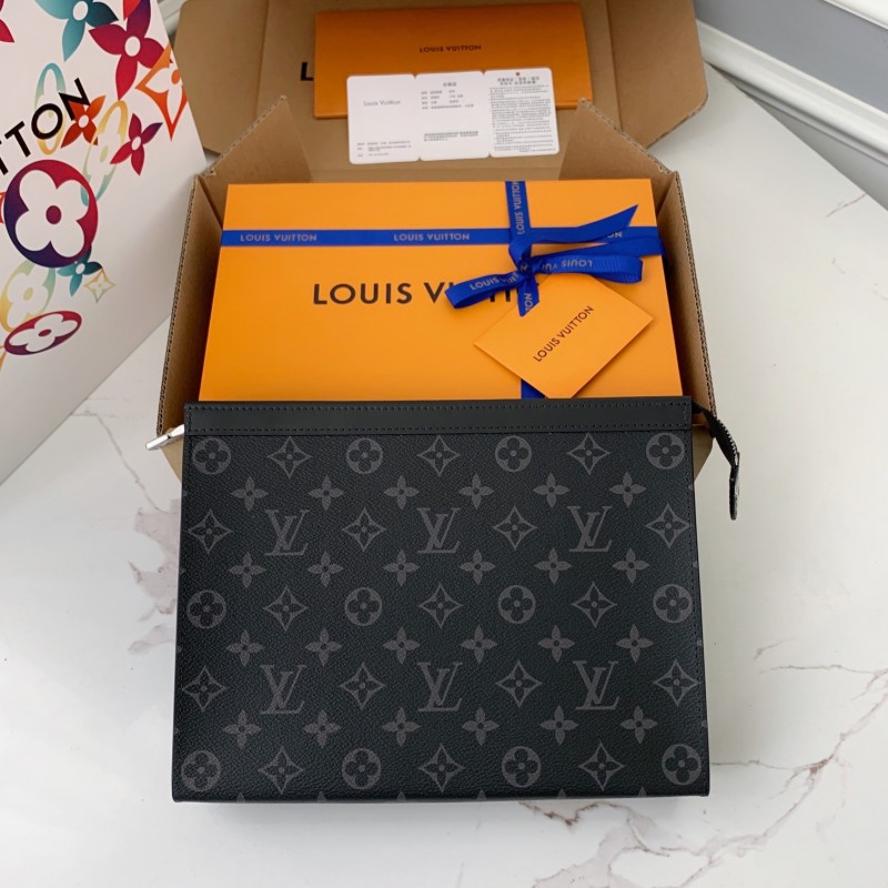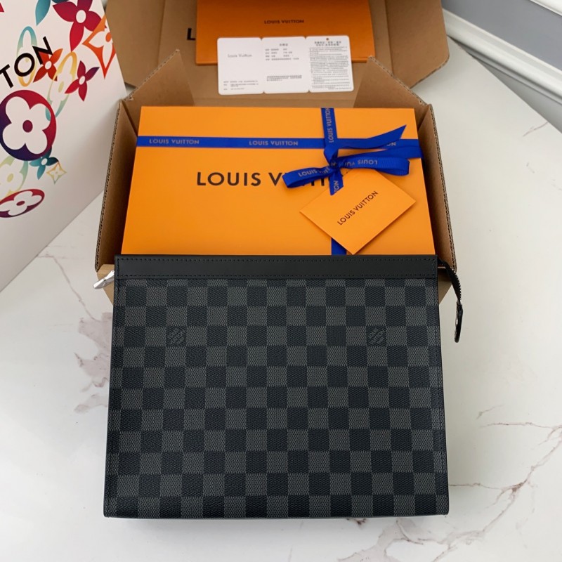 L0*is V*t0n Men's POCHETTE VOYAGE Black Flower Handbag N41696, 27 * 21 * 6cm