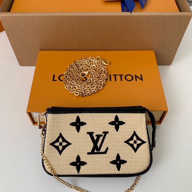 L0*is V*t0n New Lafite Cotton Embroidery MINI POCHETTE ACCESSOIRES Hand Chain Small Bag M82472