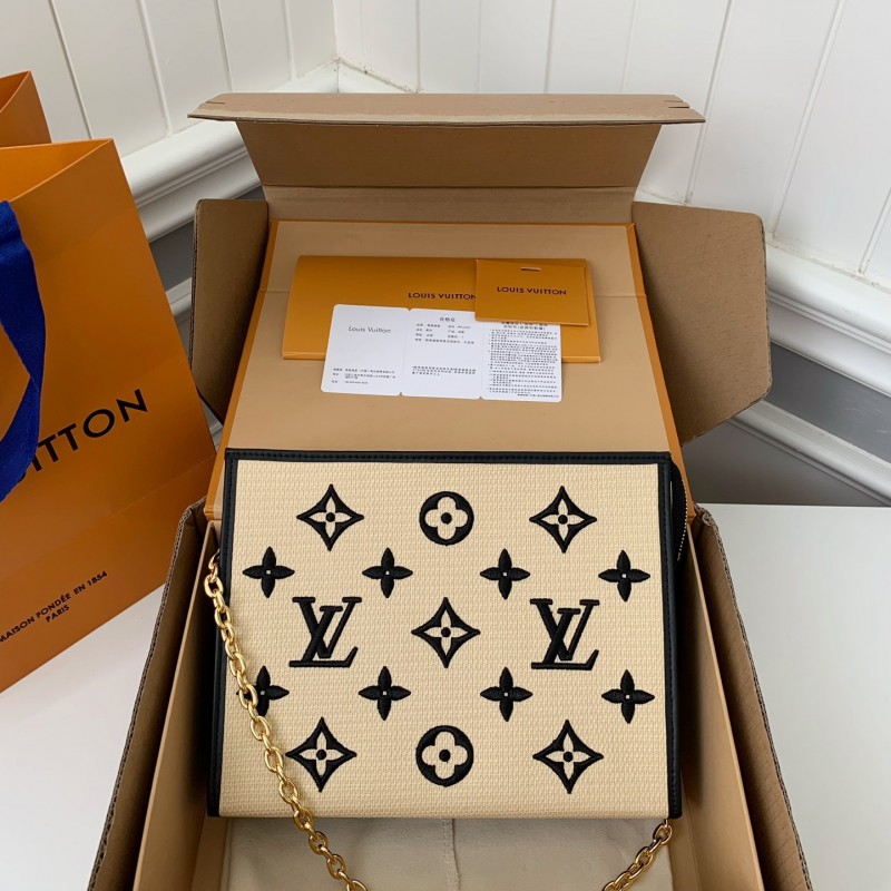 L0*is V*t0n's New Lafite Cotton Embroidered Toiletry Pouch Chain Bag M82521 Size: 25 * 20 * 5.5cm